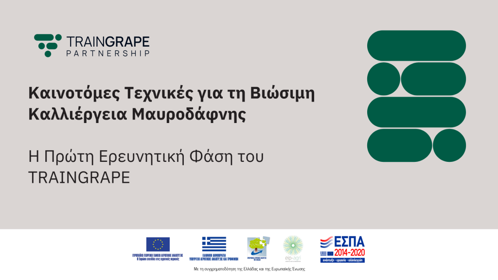 Το ερευνητικό έργο TRAINGRAPE, με τίτλο «Συστήματα Μόρφωσης – Μαυροδάφνη», προχωρά δυναμικά στην πρώτη φάση υλοποίησής του, εστιάζοντας στη βιώσιμη ενίσχυση της τοπικής αμπελουργίας και της παραγωγής οίνου στην περιοχή της Αχαΐας.
